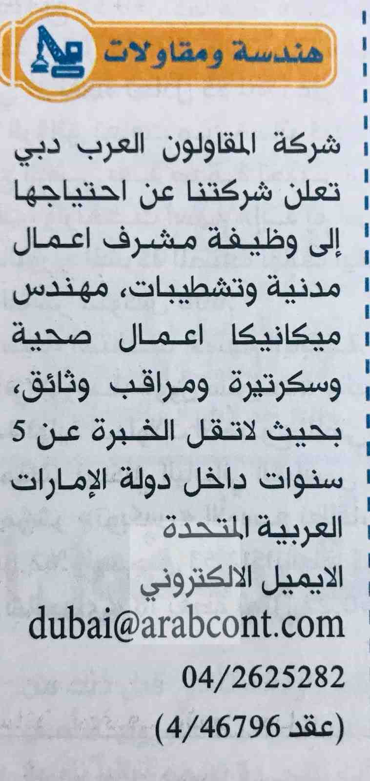 وظايف جديدة اعلان وظائف شركة المقاولون العرب عثمان احمد عثمان 2020 وظايف جديدة. تعلن شركة المقاولون العرب عن مجموعه من الوظائف الخاليه فى الشركه لكافة التخصصات الوظائف المطلوبة محاسبين حديثى التخرج و خبرة. قدم الان على وظائف شركة المقاولون العرب تعلن مجموعة المقاولون العرب عثمان احمد عثمان عن عدد من الوظائف الشاغرة برواتب مجزية و تعيينات و تثبيت خلال شهور قليلة.