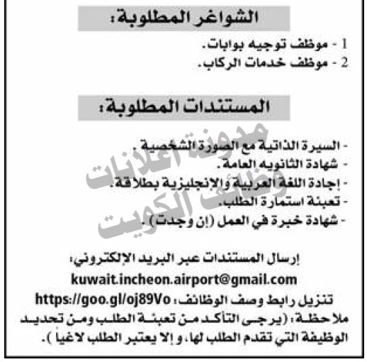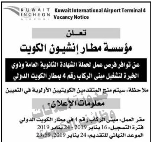 وظائف الصحف الكويتية اليوم الأربعاء 5 ديسمبر 2018 Incheon Airport Jobs In Kuwait Today 05 12 2018
